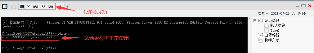 使用中国菜刀打开虚拟终端,执行a.bat文件