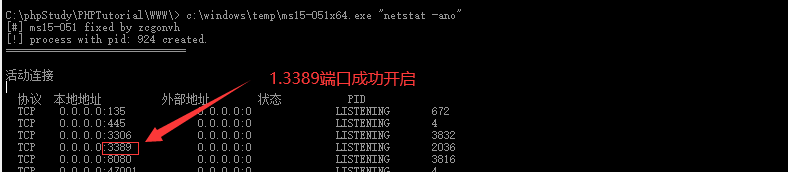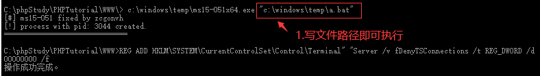 上传a.bat文件至c:\windows\temp目录下,内容为开启3389端口