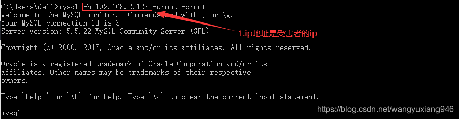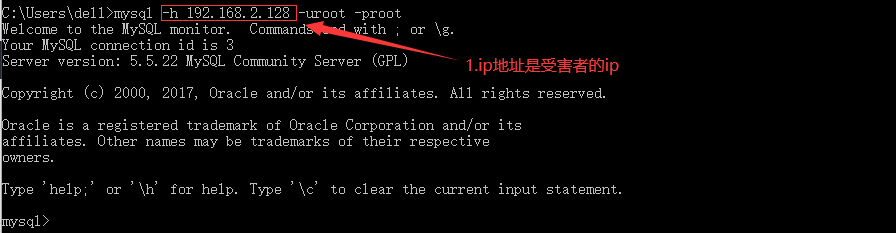 物理机远程连接受害者的数据库,ip写受害者的ip