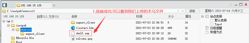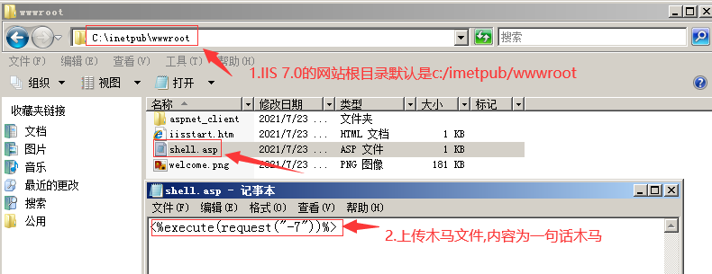 上传木马文件到网站根目录( 默认是C:\inetpub\wwwroot )下,内容为一句话木马