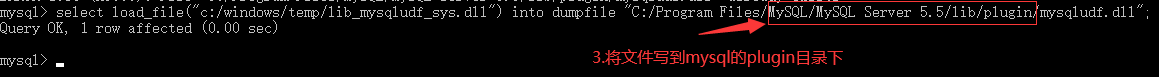 利用MySQL的文件读写功能,将dll文件从c:/windows/temp目录移动到MySQL的安装路径下,dll文件只有在此目录下才能发挥作用