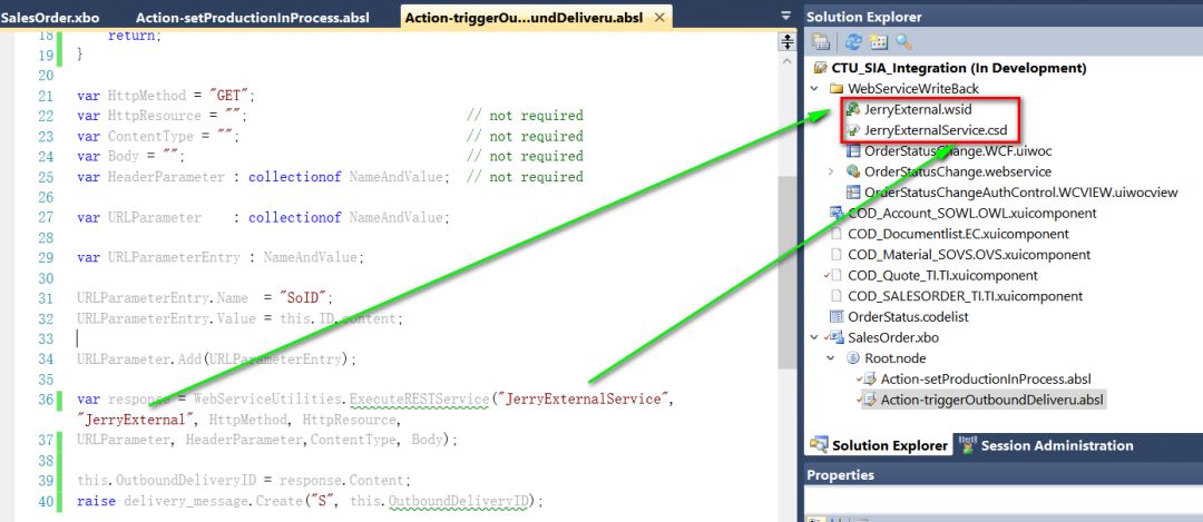 绑定到UI这个叫做Trigger Delivery的按钮上。同时在销售订单抬头区域新建一个字段,用于存放S/4HANA创建好的交货单ID。