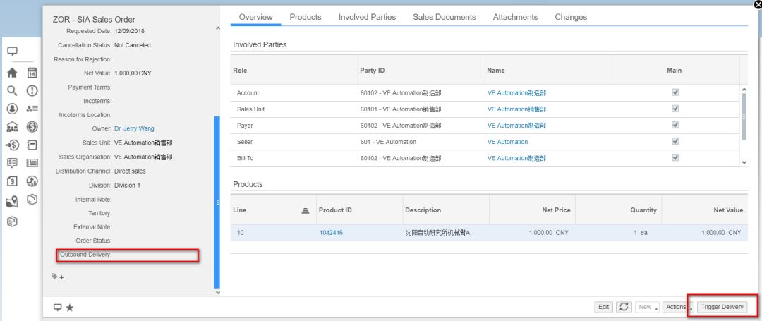 当然有。假设这样一个场景:C/4HANA的销售订单同步到S/4HANA后,在S/4HANA完成必要的生产流程后,可以进行后续的交货流程。现在的需求就是:直接在C4C销售订单的UI上触发S/4HANA外向交货单(Outbound Delivery)的创建,这样业务人员不需要登录S/4HANA系统,而只需在手机上使用C4C应用,就能完成S/4HANA交货流程的触发了。
