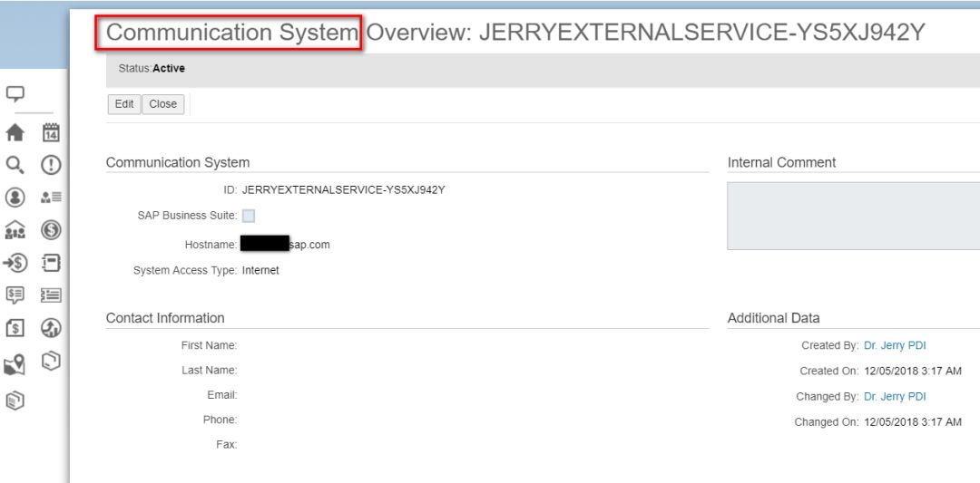 简单地说,Communication System负责维护Service Provider所在的系统,在我们这个例子里是S/4HANA系统: