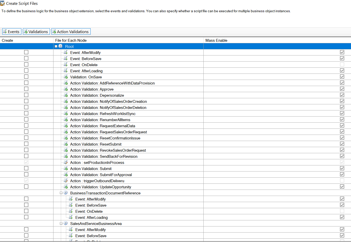 每个节点对应一些更底层的模型节点,上面可以注册各种事件处理函数。下图是Service Request这个BO的抬头节点的事件处理函数:
