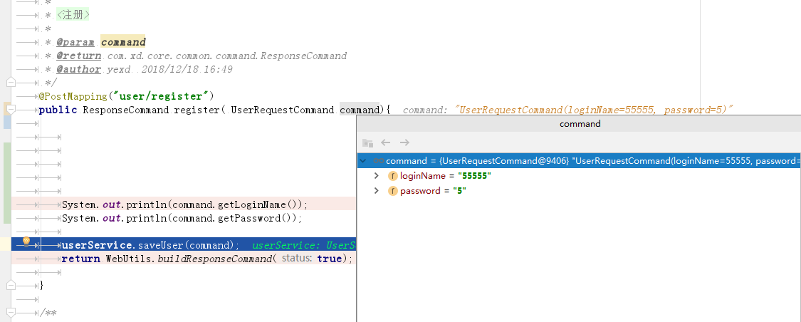 测试一下,写个html 使用axios 发个异步请求过去,看下图,后台已经接受到参数了