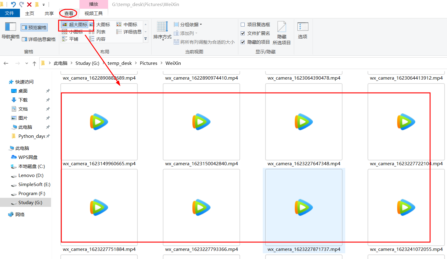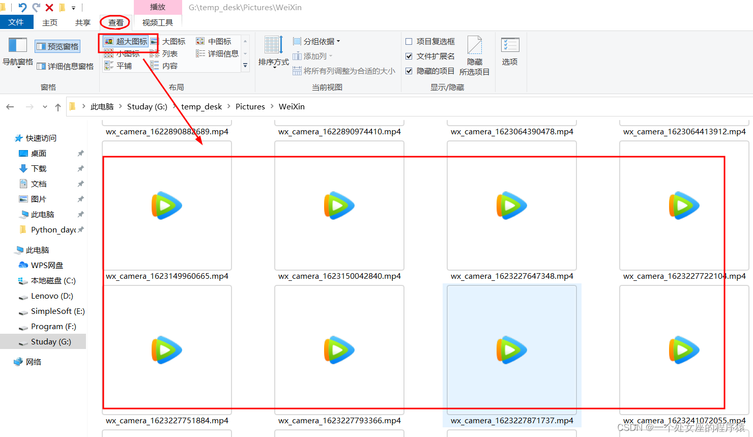 第一步,菜单栏-选择超大图标或图标