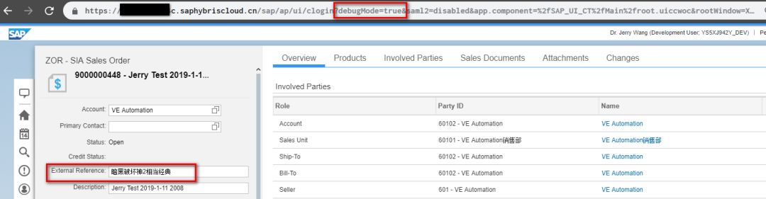 给C4C系统在浏览器里的url添加参数debugMode=true, 然后刷新页面,按住Ctrl键再单击External Reference字段,
