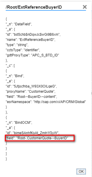 在这个UI模型字段上再点击Show Model,就能看到这个UI模型字段绑定到的BO字段名称为BuyerID。
