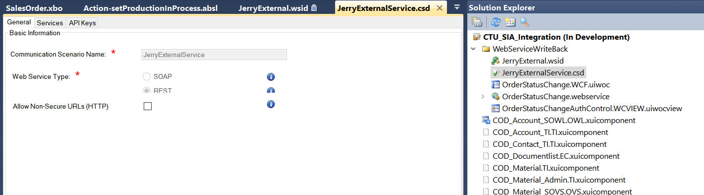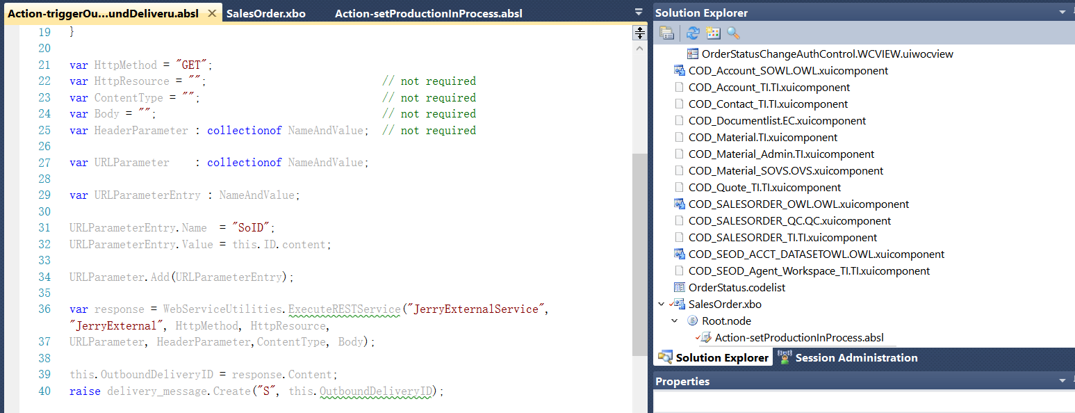 【摘要】 首先我们得有一个可以正常工作的Restful API:然后在Cloud for Customer的Cloud Application Studio里创建Restful API的模型,把第一步可以正常工作的Restful API url填进模型里去:然后在ABSL里使用如下代码进行消费:import ABSL;if( this.OutboundDeliveryID.IsInitial() ==...