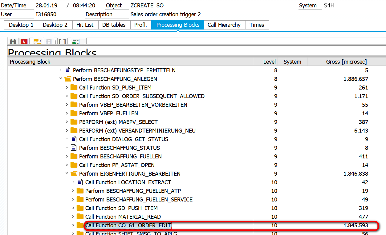 用事务码SAT分析,发现总共创建消耗的时间为3.98秒,
