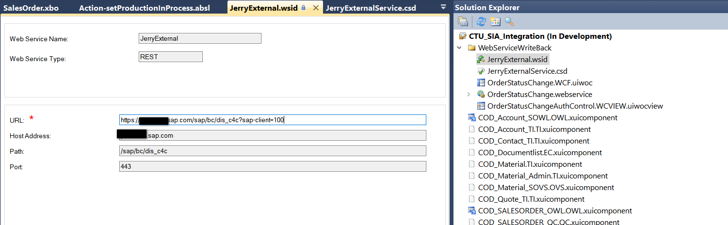 然后在Cloud for Customer的Cloud Application Studio里创建Restful API的模型,把第一步可以正常工作的Restful API url填进模型里去: