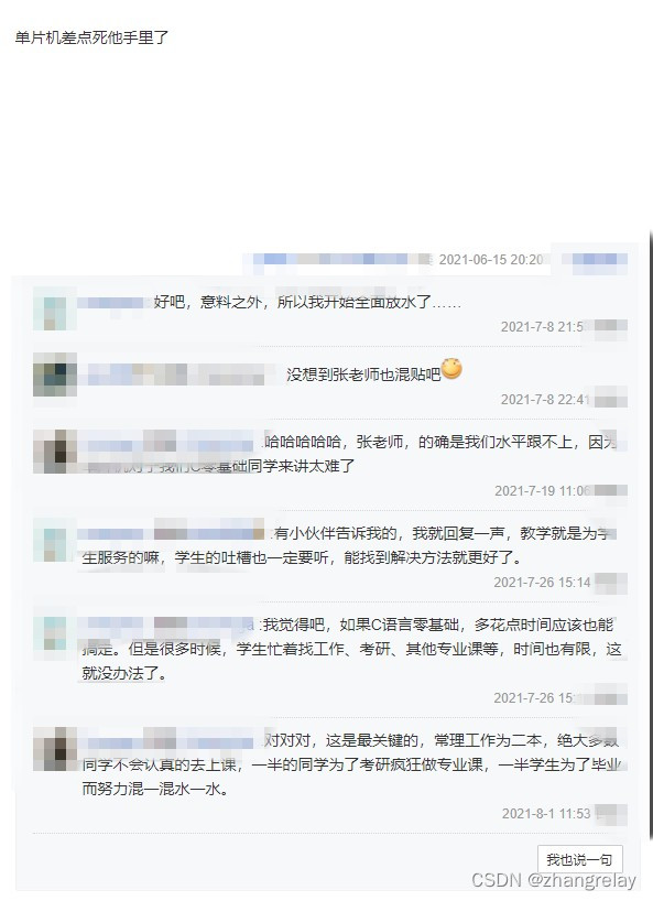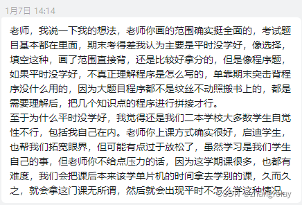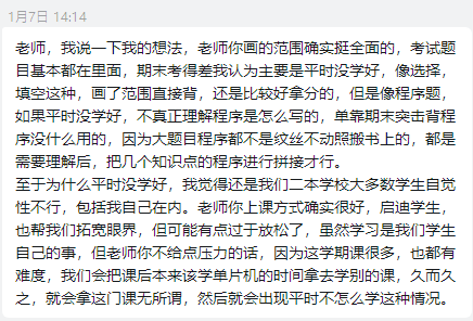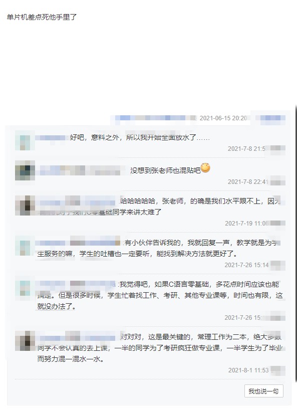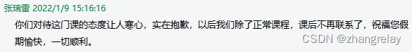 这是学生告诉我网上吐槽的内容,我基本一一回复了,这是2021年的,上半年如此,下半年也是如此,每一届都是如此,别的班也类似……
