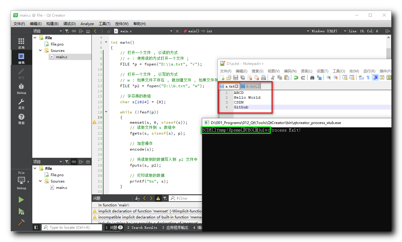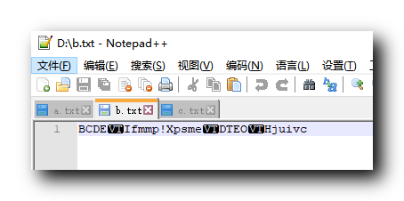 加密文件 : 传入一个字符串指针 , 逐个遍历字符串中的字符 , 只要字符不为 ‘\0’ , 也就是 ASCII 码 0 值 , 就继续遍历 , 循环控制变量 *s 不为 0 即可 ; 加密操作就是将字符自增即可 ;