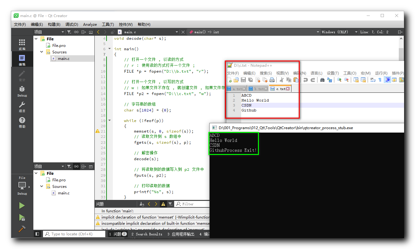 打开两个文件 , 从一个文件中读取文本 , 进行加密 , 然后再写出到另一个文件中 ;