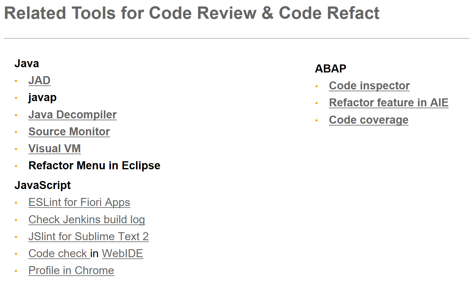 大家好,这是我今天演讲的目录,分Java,JavaScript,ABAP三门编程语言来讲述。