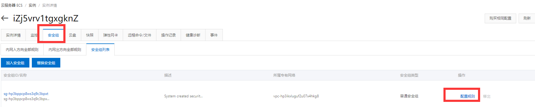 进入后切换到 安全组页签 点击配置规则