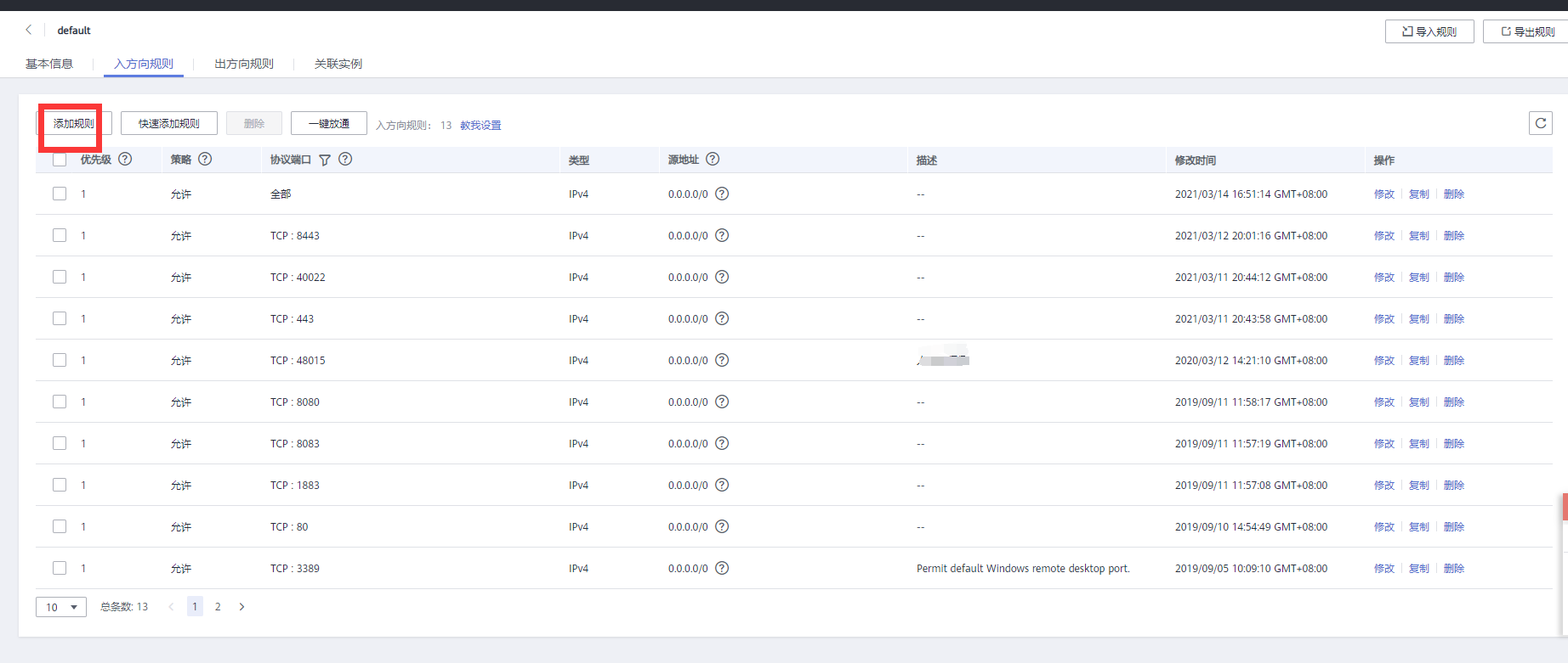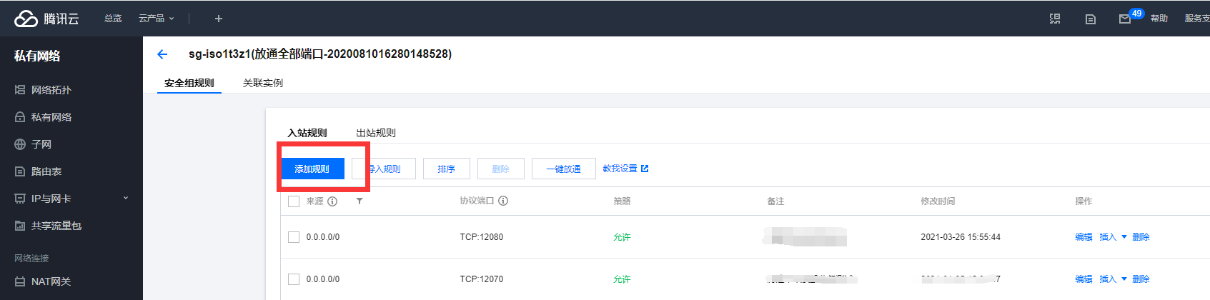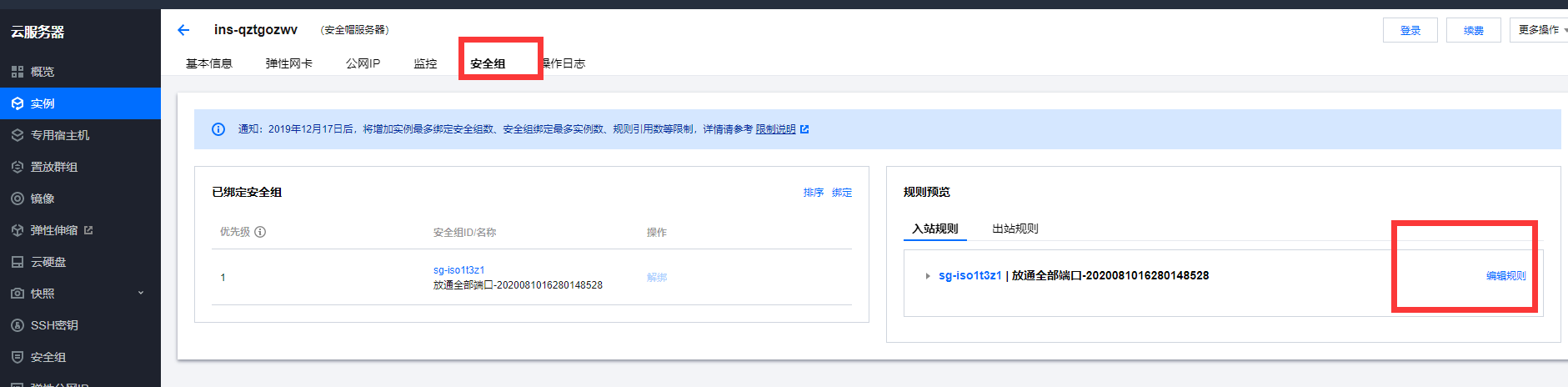 同样进入后点击安全组,点击右侧编辑规则