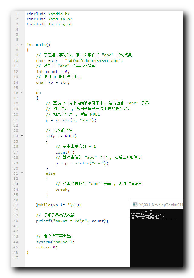 业务场景 : 给定字符串 , 然后在下面的字符串中查找 “abc” 字符串的出现次数 ;