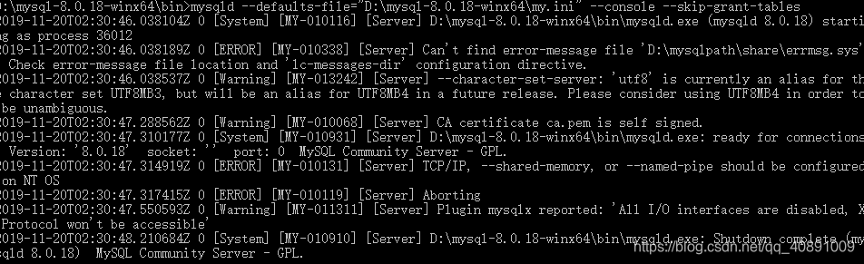 下载官网的Mysql的压缩包后安装是没有记住登录密码,导致一直登录不进去,报:ERROR 1045 (28000): Access denied for user 'ODBC'@'localhost' (using password: NO) -- 所以需要手动修改登录密码(注:本次安装的Mysql版本是:8.0.18)