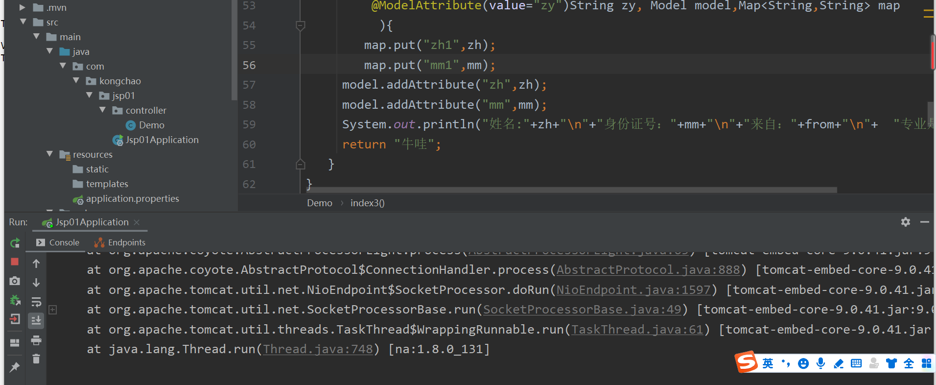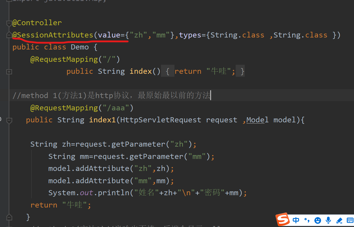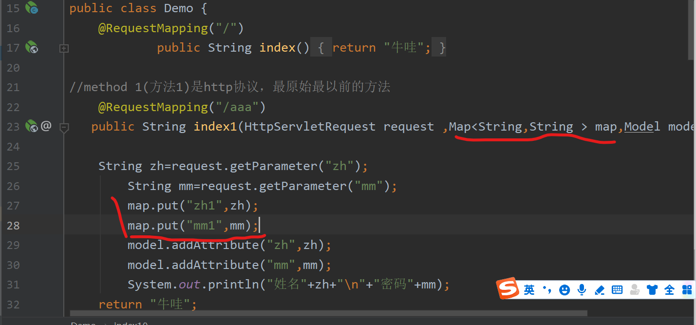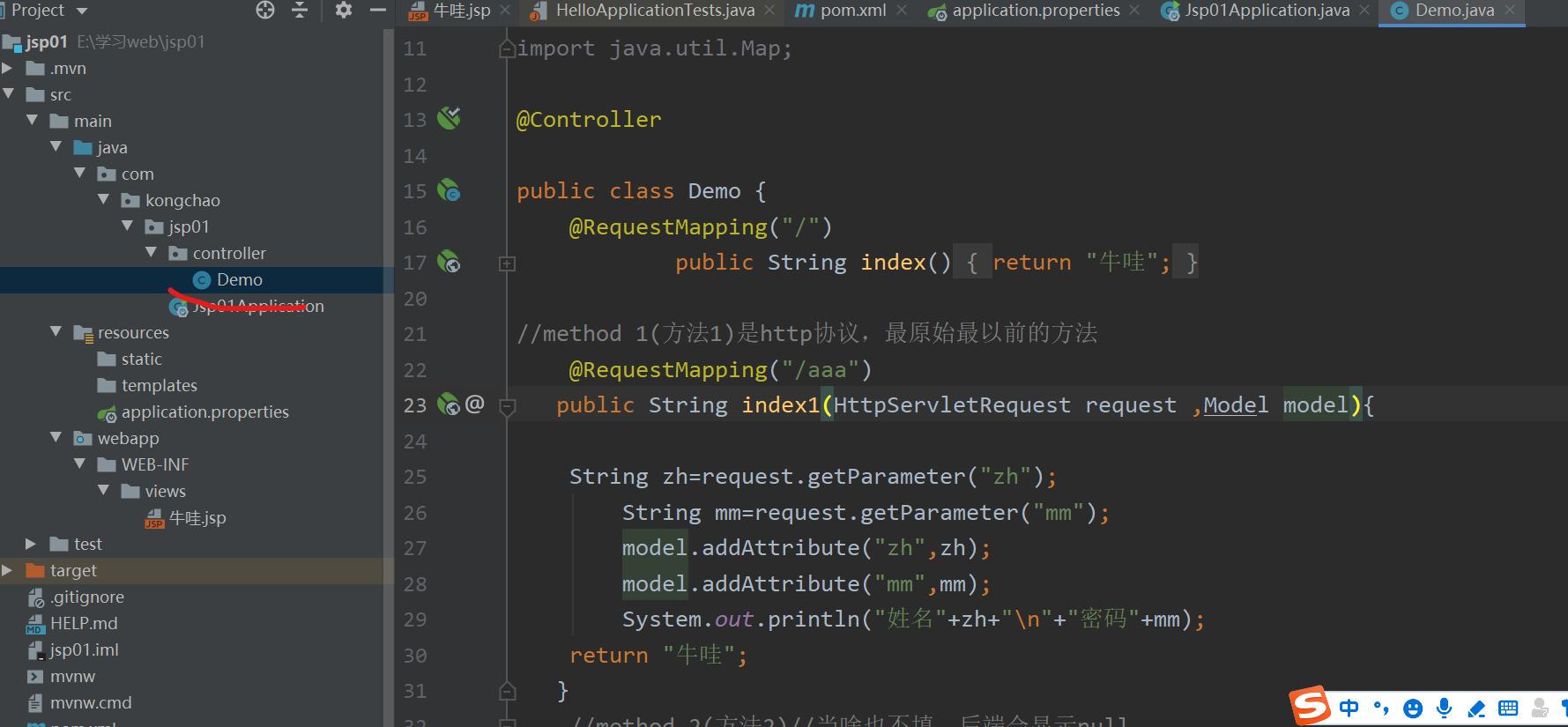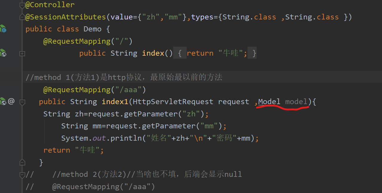 打开我们前面写过的文章,在Demo类下,如图,这是我后端数据接受的第一种方法,