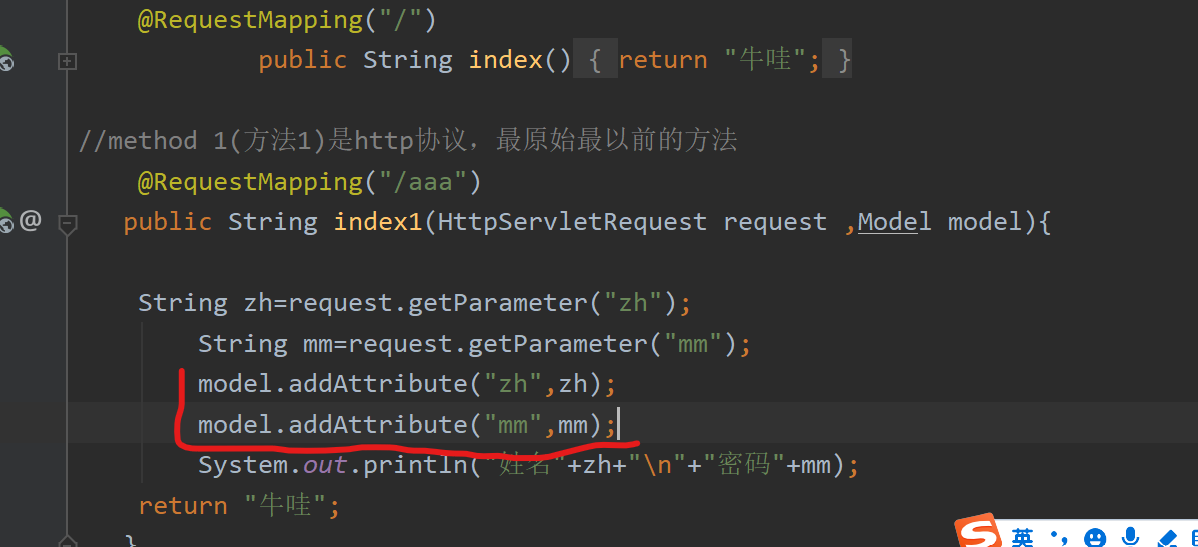 前端数据接受只需要在第二个public String括号里加上Model model 其中第二个model可以