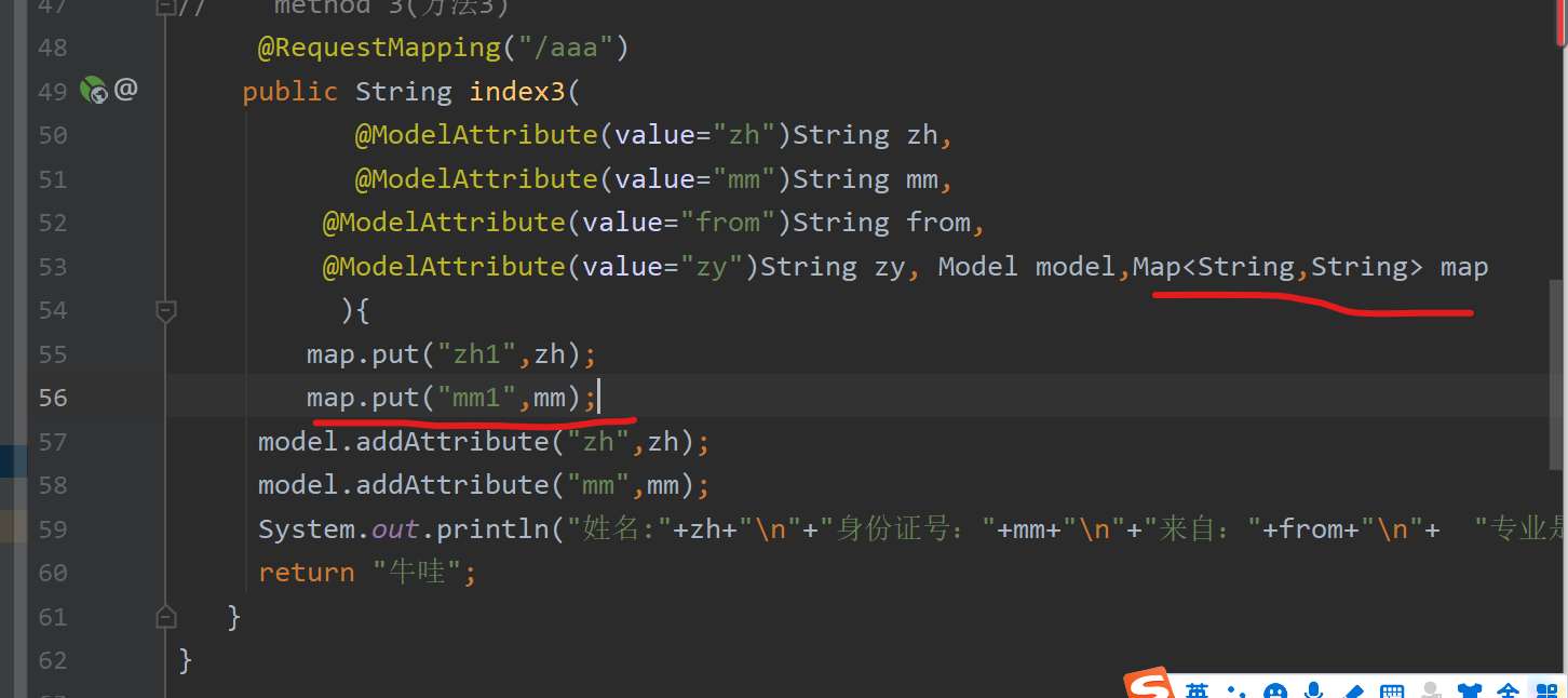 然后也是在第二个public下加上Map<String,String> map 然后在括号里加上如图: