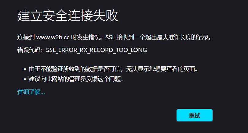 ssl接收到一个超出最大准许长度的记录。(错误码:ssl-error-rx-record-too-long)