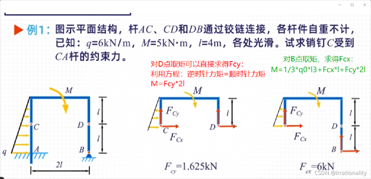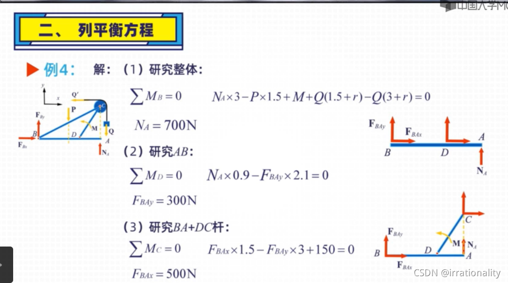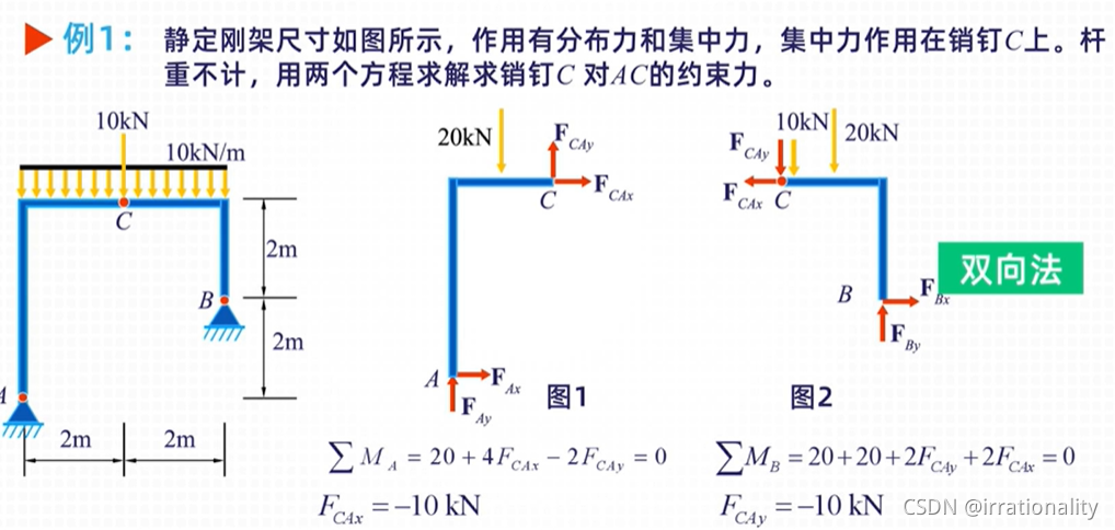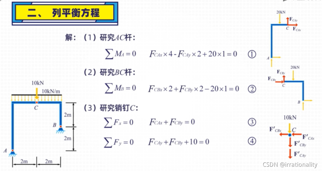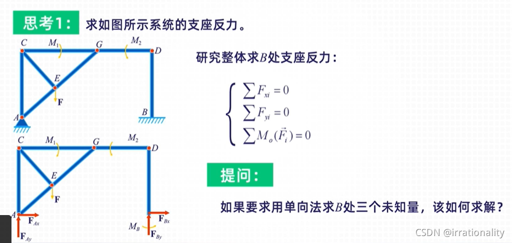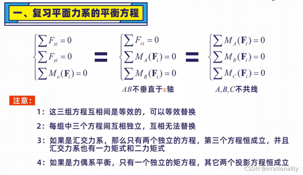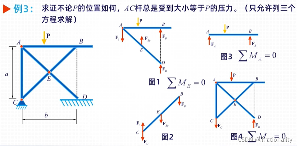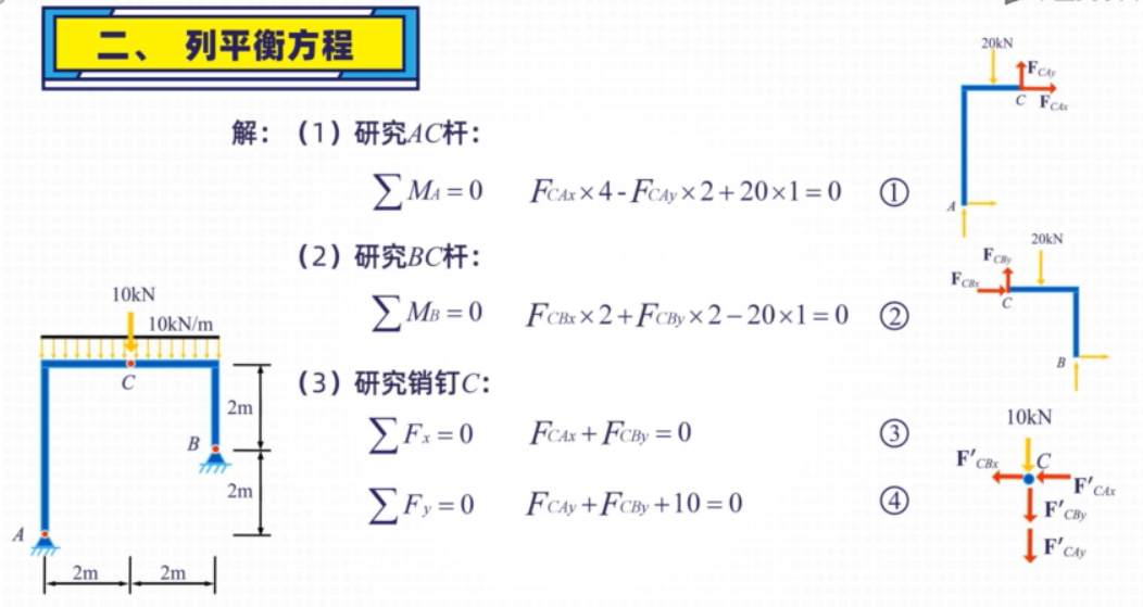 解决相关性问题:例如选取了AC、C在x方向的投影方程,就不能再取整体研究方程。很容易明白他们是线性相关的。