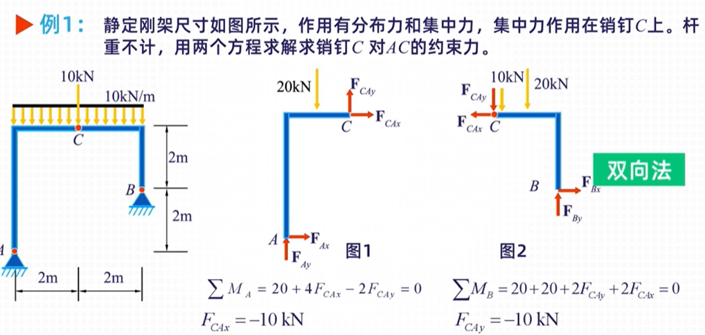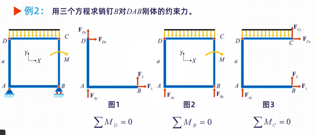 由于销钉受到作用力,则不能为两对大小相等,方向相反的约束反力