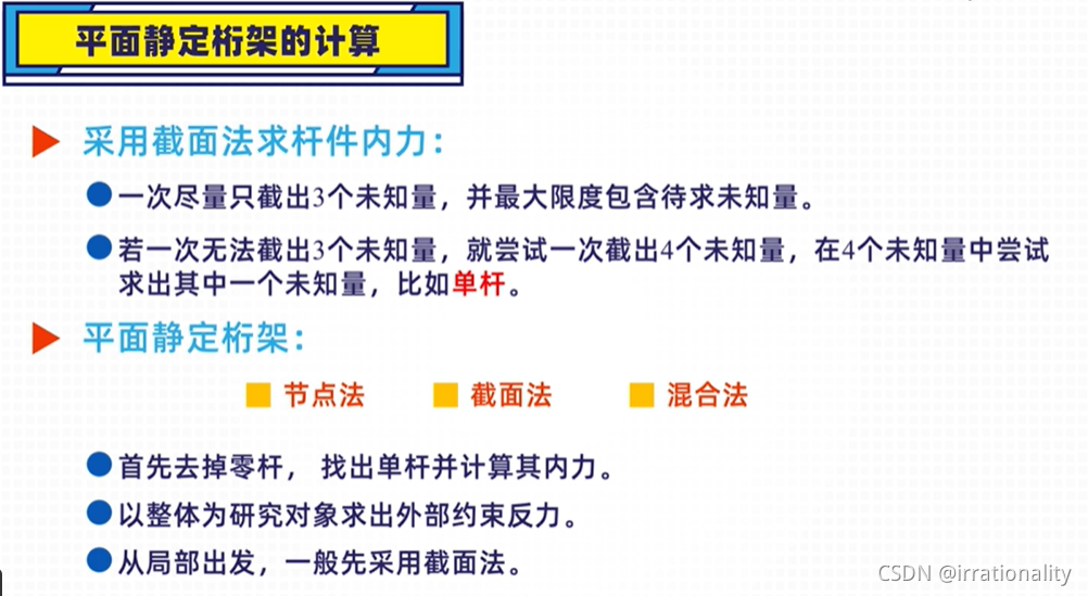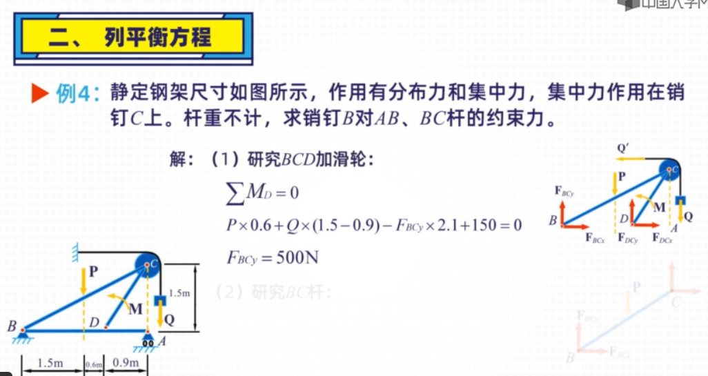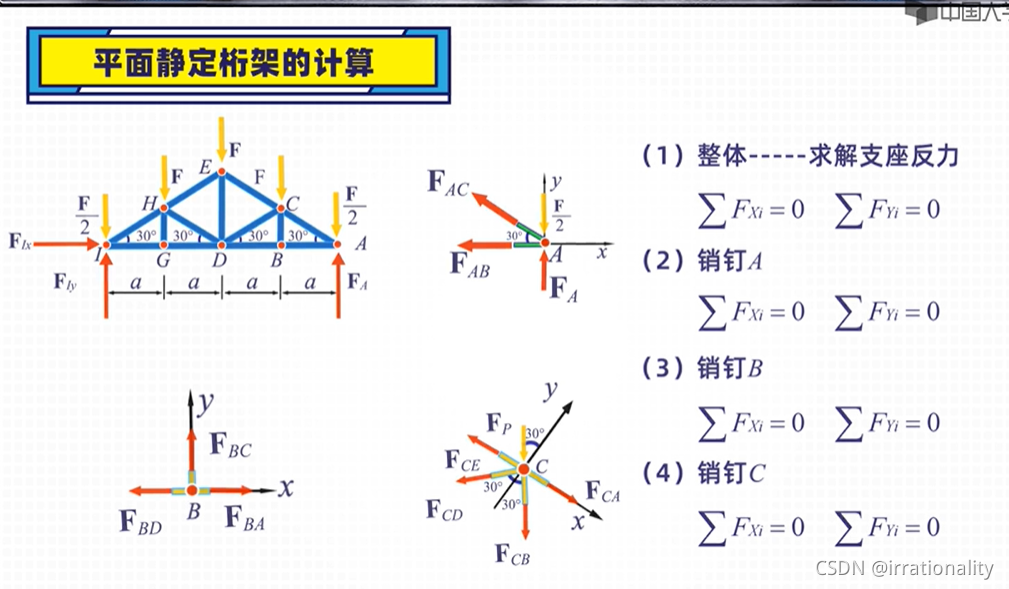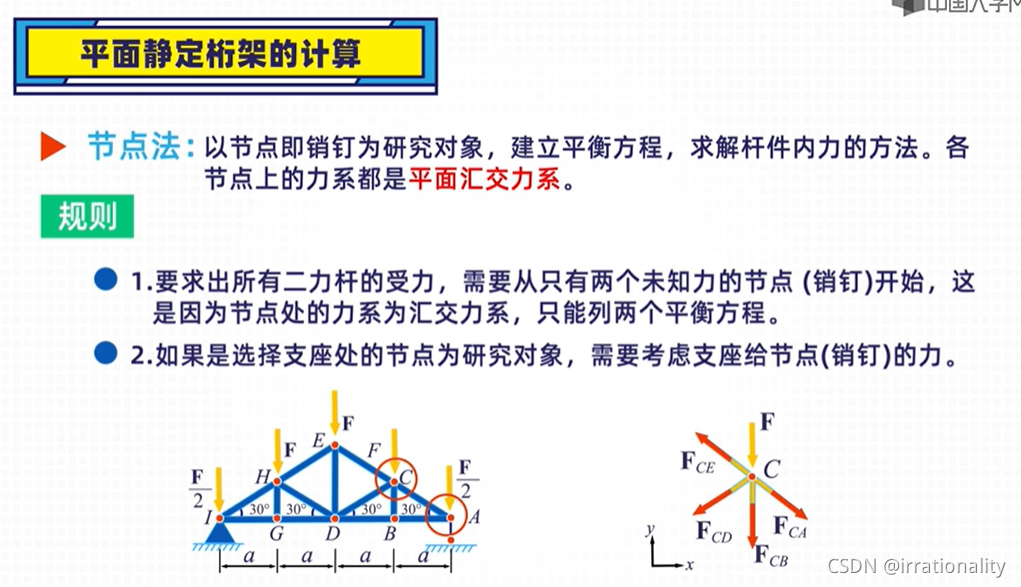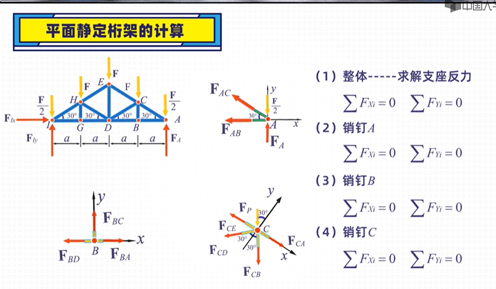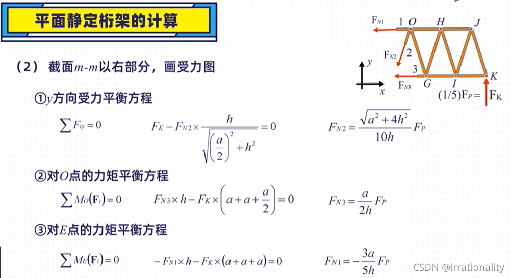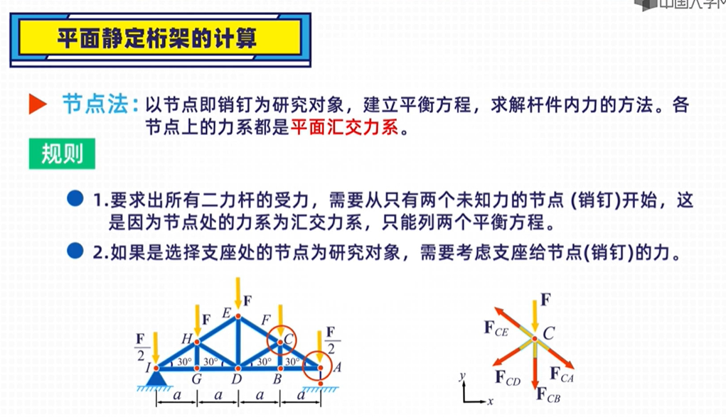 第3周 静力学3---平面任意力系2(静定系统平衡计算和桁架结构计算)
