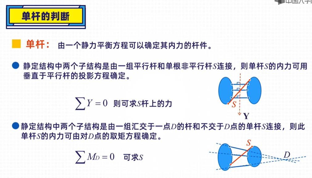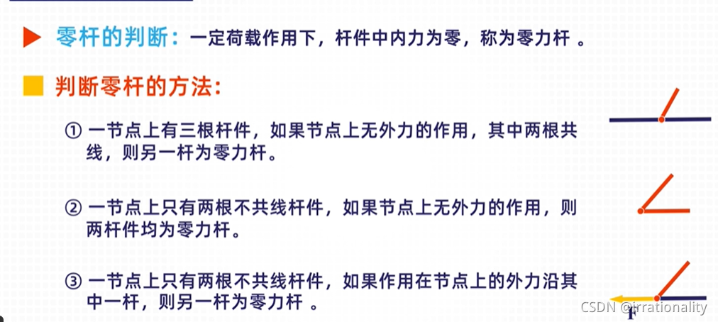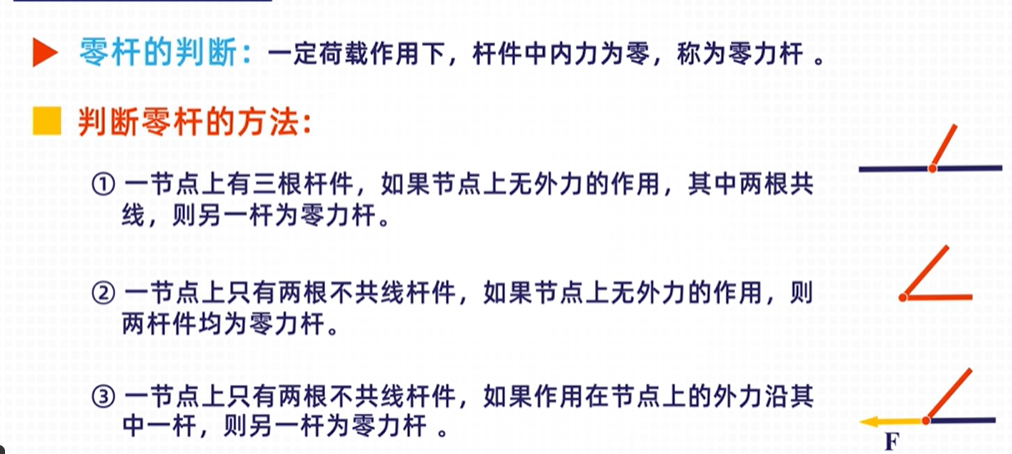 算零力杆必须要是已知的模型,不能主观臆断,可以用拆干法:也就是看到零力杆就拆掉,进而继续寻找模型解决问题。但实际解决的时候不可以拆。
