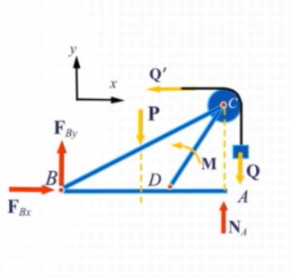 注意这个图,对整体研究,B取矩,可以直接求解。