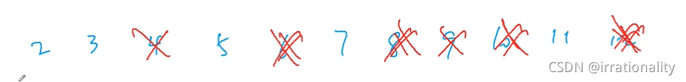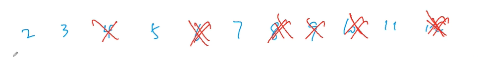 依次把2的所有倍数,3的所有倍数,依次删除 ,用之前还没有被删掉的数字去筛选后面的,保证了2~p-1都没有p的因数