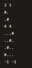 2 1 #. .# 4 4 ...# ..#. .#.. #... -1 -1