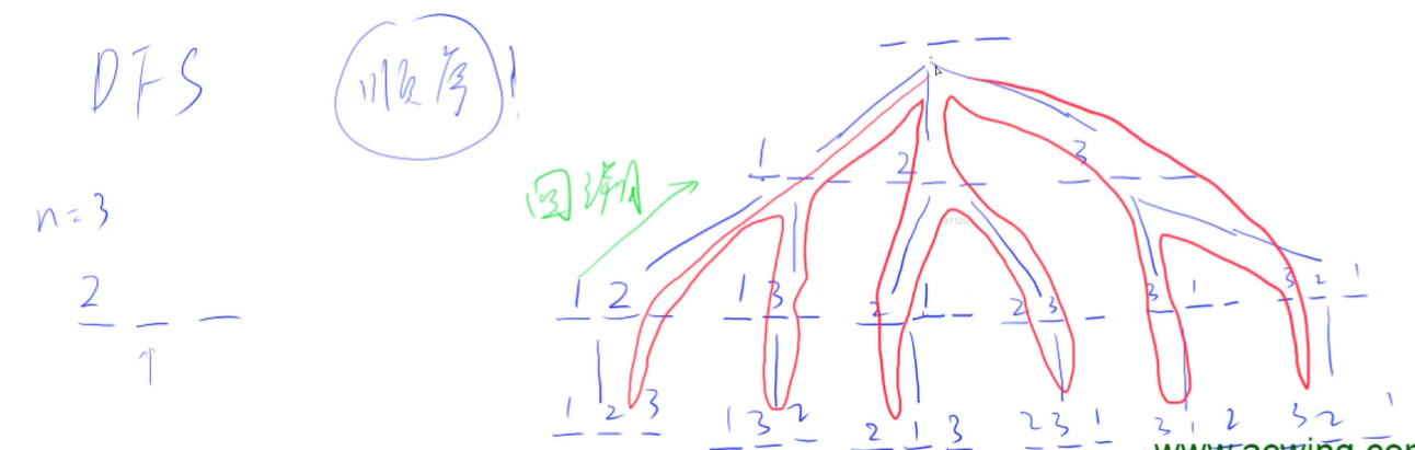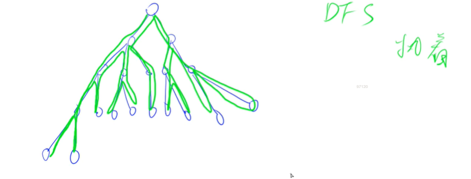 深度优先搜索非常执着,就是要 找穿一条路,然后再走下一条,而不会退到远点,而是一有机会就走向下一条