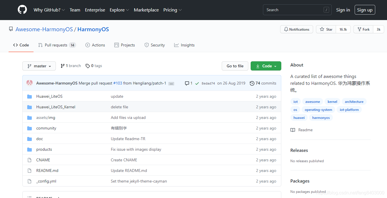 官方给的github下载地址:【https://github.com/Awesome-HarmonyOS/HarmonyOS】