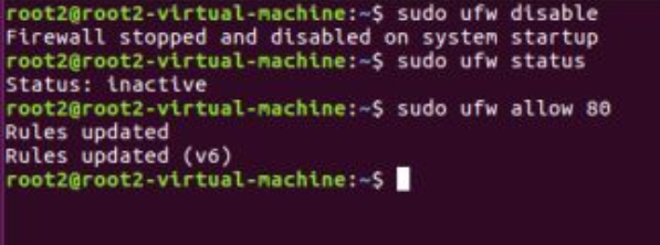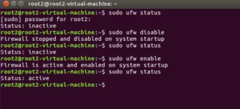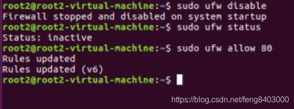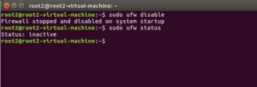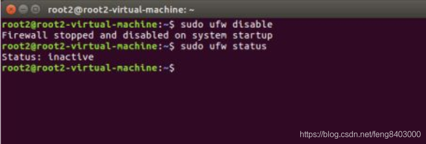 在Ubuntu中 我们使用sudo ufw disable命令来关闭防火墙。执行该命令之后 我们使用sudo ufw status命令来查看当前防火墙的状态 如果是inactive 说明我们的防火墙已经关闭掉了。