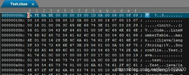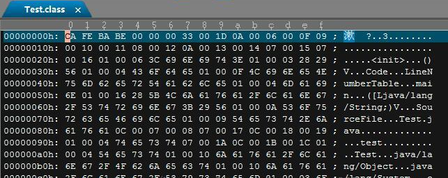 看下Test.class里究竟是什么东西,class文件的内容如下: