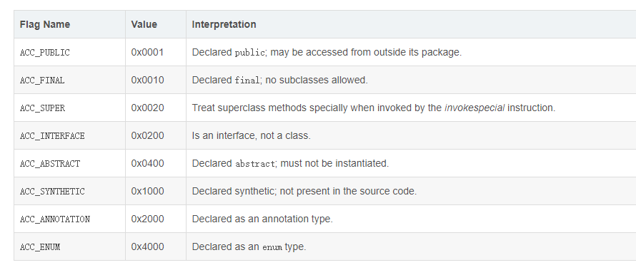 0x0021 = 0x0020|0x0001,即ACC_PUBLIC和ACC_SUPER为真,ACC_PUBLIC好理解,ACC_SUPER这是什么鬼,翻看官方文档,原文如下: