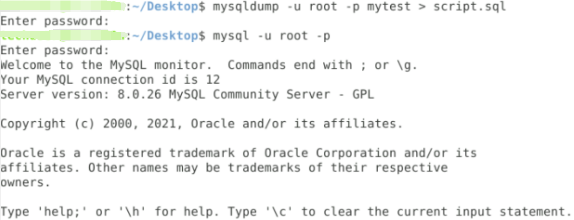 mysqldump -u root -p mytest > script.sql