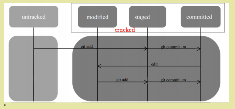 - staged:已暂存,表示对以修改的文件做了标记,使之包含在下次要提交的文件列表中 Changes to be committed