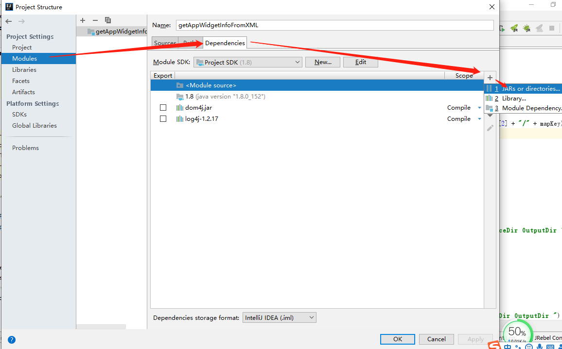 打开 File -> Project Structure -> Modules -> Dependencies -> 加号 -> 1. Jars or directories...