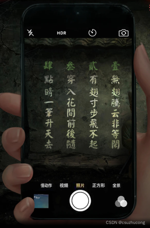 首先用手机看墙上的字谜。