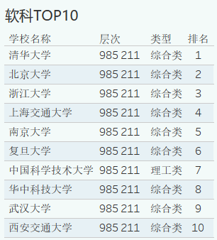 软科高校排名TOP10