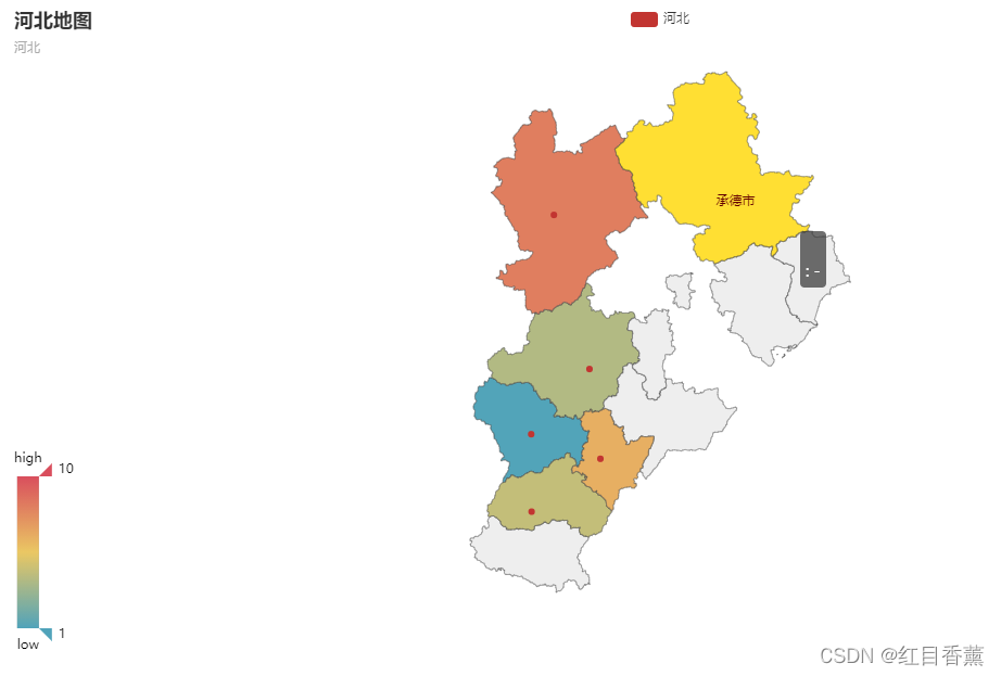 map2.add('河北', city, values2, visual_range=[1, 10], maptype='河北', is_visualmap=True, visual_text_color='#000')