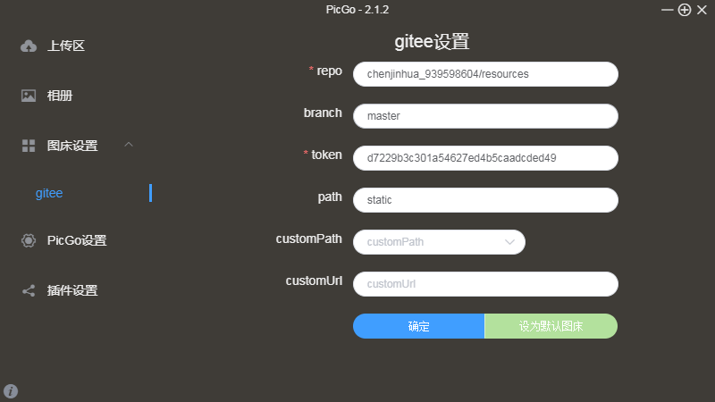 点击picgo的设置栏,点击修改上传快捷键后面的设置按钮,然后输入组合键,确定