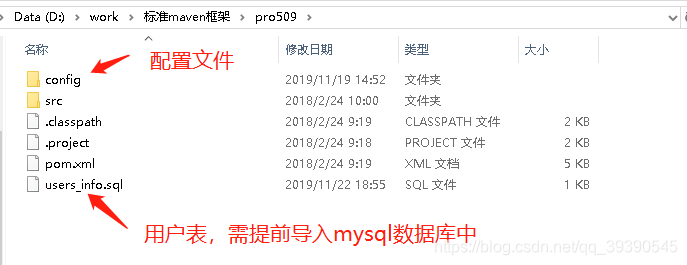 这是项目根目录,配置文件在config下,sql表是一个简单的用户表,请事先导入;