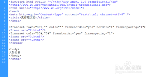 - <frameset rows="100,200,800" frameborder="yes" border="1" framespacing="1"><frame src="2.html"/><frame src="3.html"><frame src="4.html"></frame>