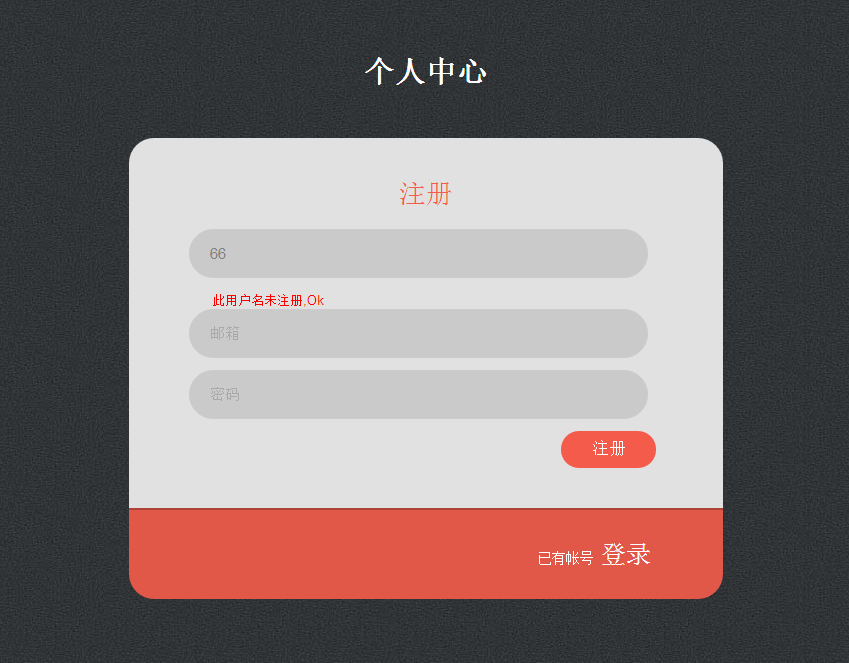 body><div class="login"> <h2>个人中心</h2> <div class="login-top"> <h1>注册</h1> <form action="{:U('Person/do_register')}" method="...